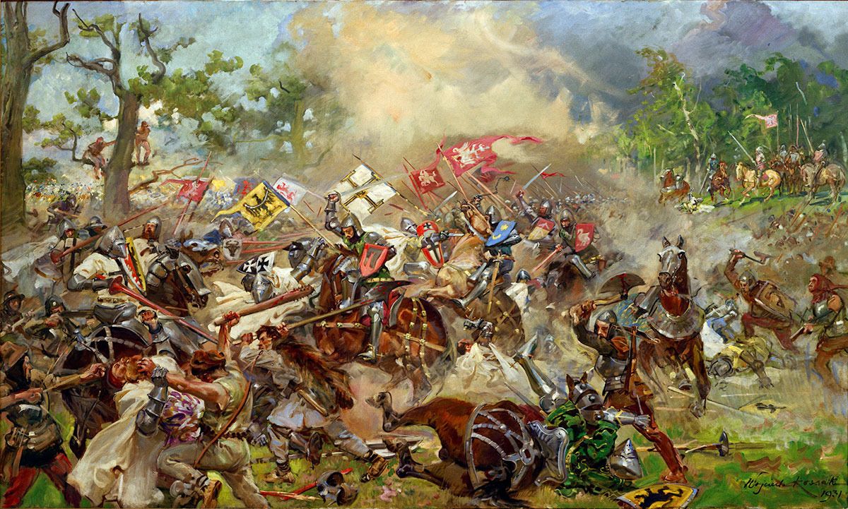 Morning of July 15, 1410. A wide field between three villages: Grunwald, Ludwigsdorf (Lodwigowo), and Tannenberg (Stębark). Today this is the Warmian-Masurian Voivodeship, the far northeast of Poland, but in the early 15th century these lands belonged to the Order of the Brothers of the German House of Saint Mary in Jerusalem, better known as the Teutonic Order. “Teutons,” named after an ancient Germanic tribe once hostile to Rome, was a term medieval Europe often used to refer to all Germans.