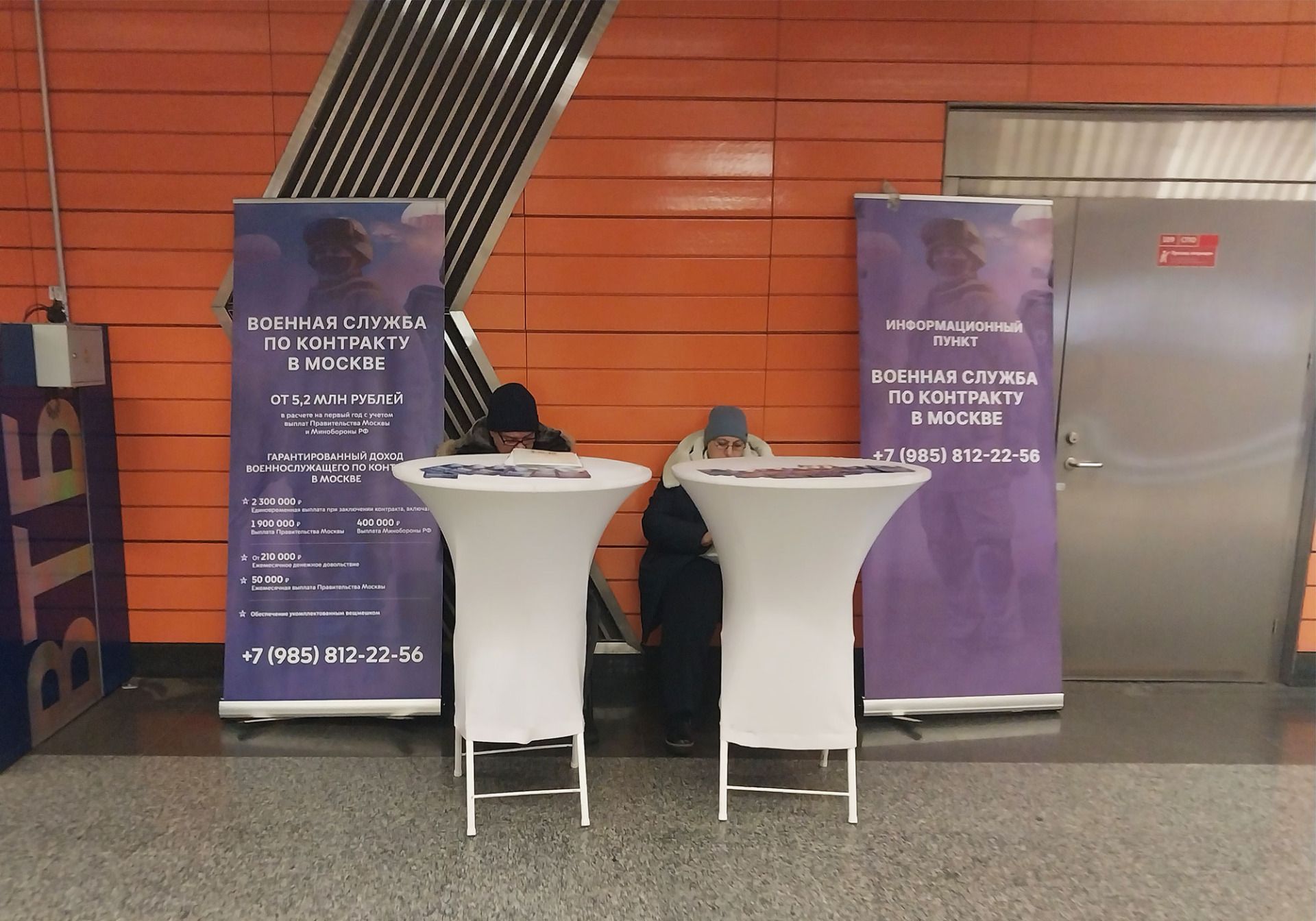 Our team meets at 8:30 at Novokosino station. There’s an information stand near the wall before the turnstiles, where you can get info about contract military service.