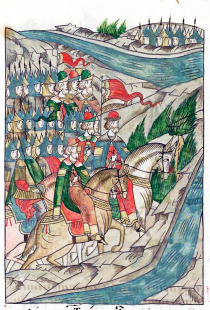 Horde prince Mamai came with his like-minded and all other Horde princes, and with all Tatar and Polovtsian troops, and also hired detachments of infidels and Armenians, and Phrygians, Cherkess, Yas, and Burtas
