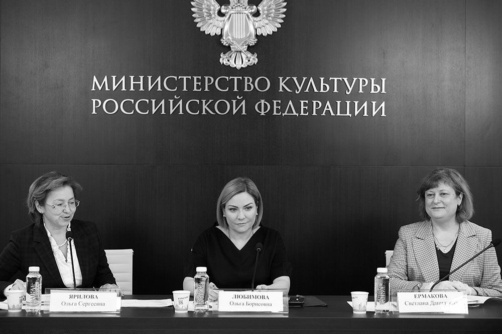 The ministry sends lists of “desired” plays on the topic of military actions to the country’s main theaters: for example, the plays “Just Live”, “Staff Clerk”, “Bear” and nine others—all part of the “SMO: True Stories” project funded by a presidential grant. Vladimir Mashkov, head of the Union of Theater Workers, is a frequent guest at the Ministry of Culture; every confident employee has a photo with him.