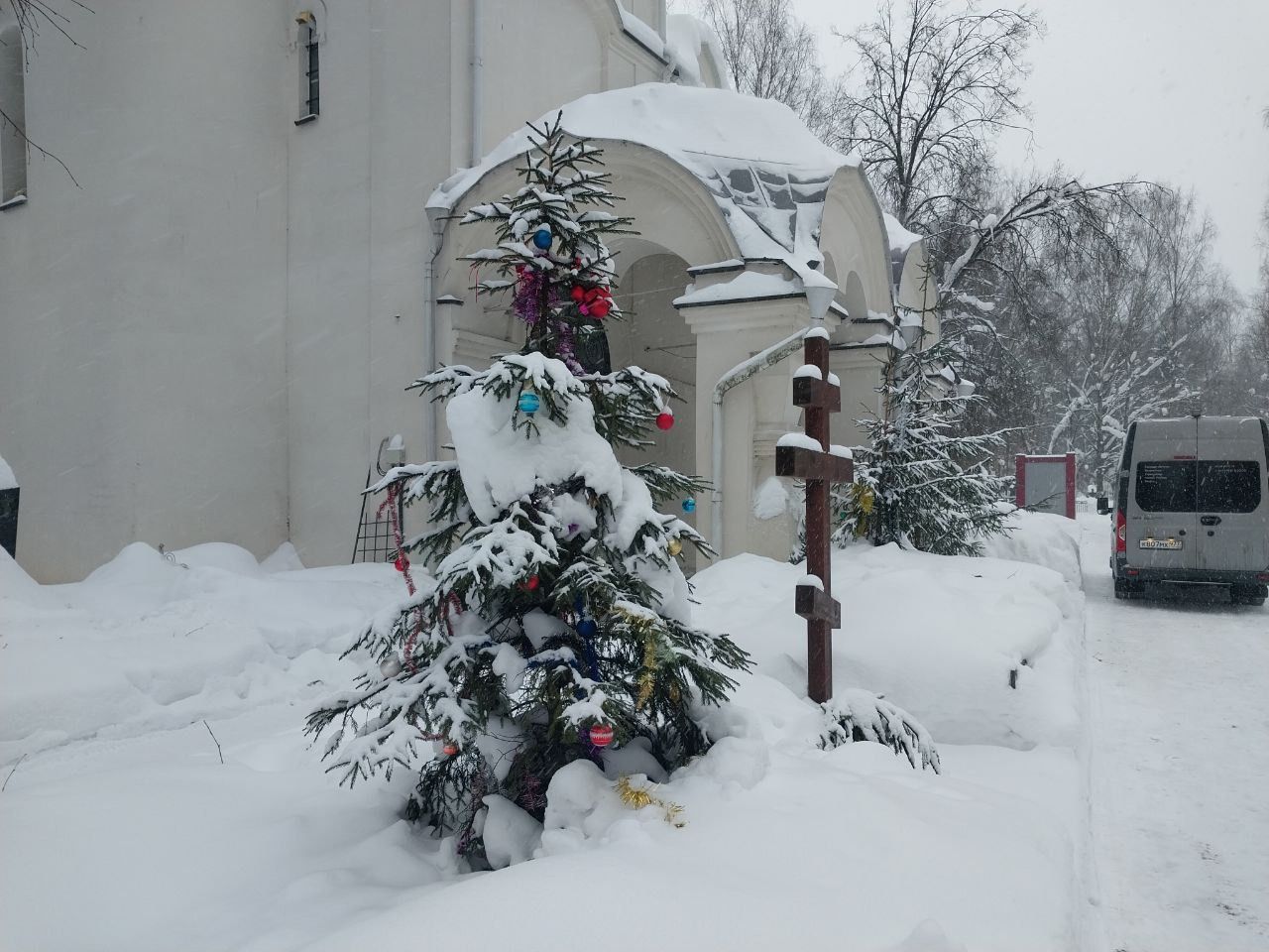 The night before, there was a heavy snowfall in Moscow, and there is a lot of snow at the cemetery. The diggers have trampled a path in the shape of an “L,” just wide enough for a coffin, and we have to carry the coffin along this path, which is usually held by the sides. In this case, two people carry the coffin: one at the head, one at the feet, and the other two stand behind them to catch in case of a fall. You have to walk backwards.