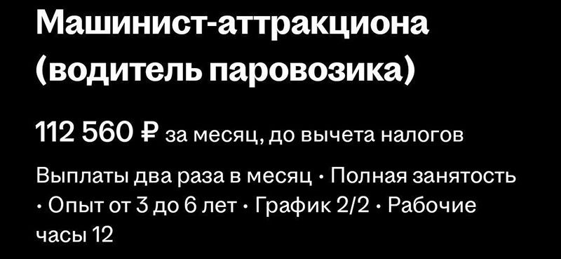 - Children's train ride operator. Pays 120 thousand. “I work as a train operator!”