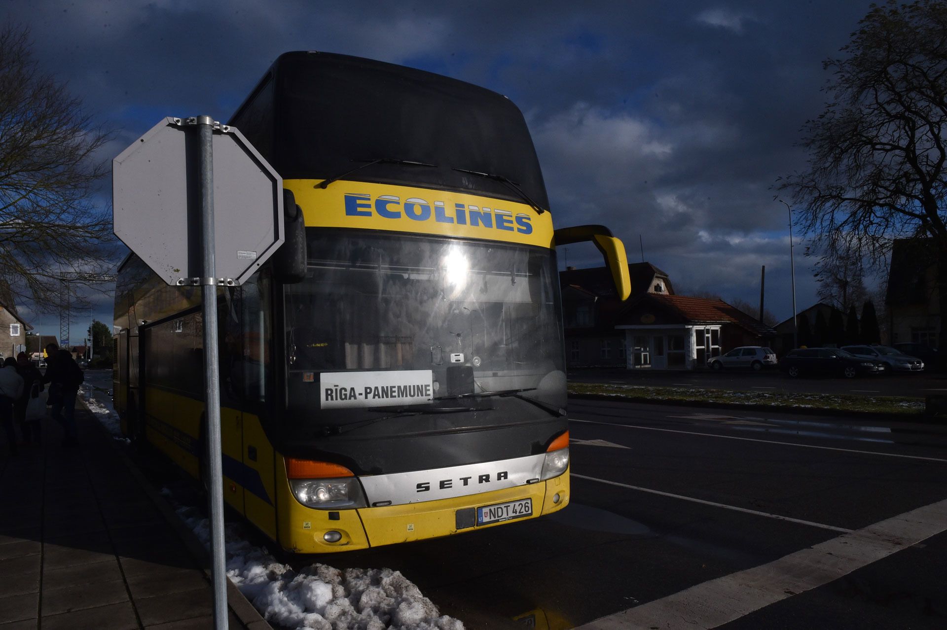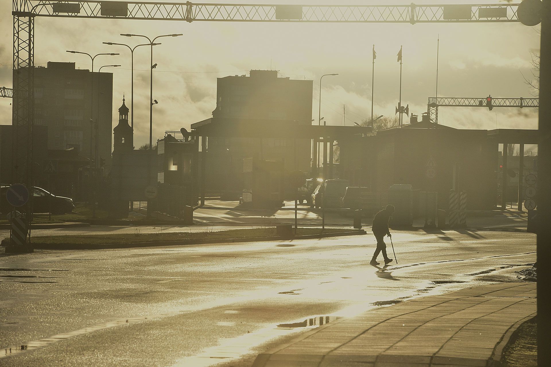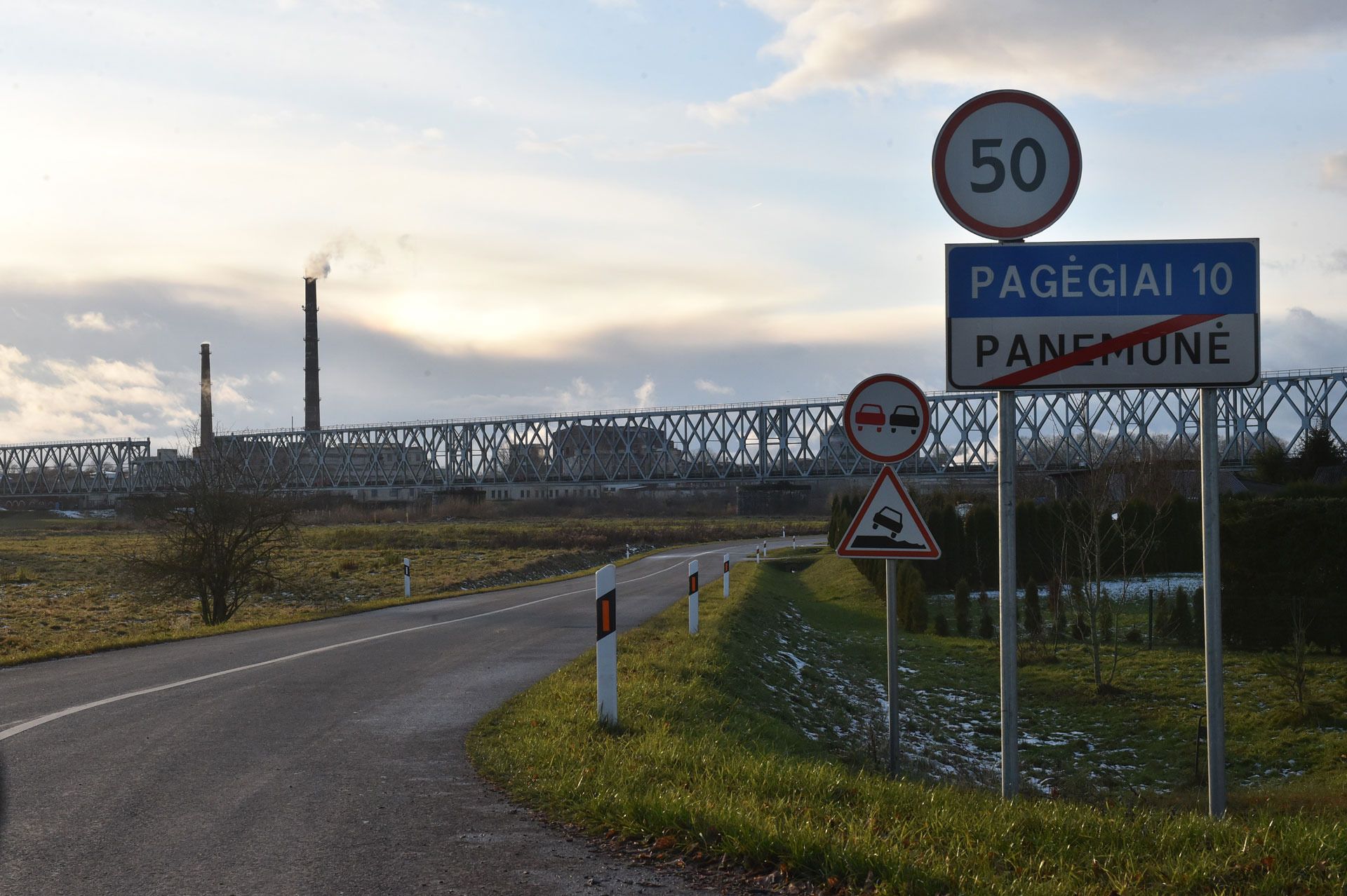 Dusk is falling when a bus from Riga to Panemune stops near the Queen Louise Bridge. Several passengers with bags get off and head to the border checkpoint on the bridge. Crossing it takes only a few minutes; there is no queue at the checkpoint.